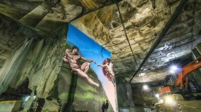 Il murales di Ozmo nel bacino di Fantiscritti a Carrara