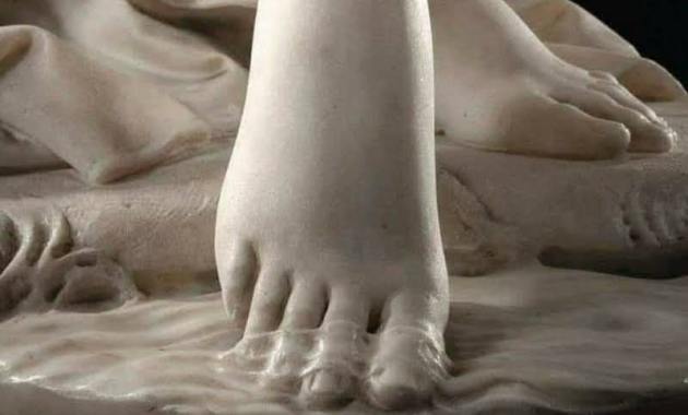 🇮🇹Al di sotto delle pieghe dell’abito scolpito nel marmo di Carrara, si intravedono le scarpe che indossa la Madonna di Bruges: delle pianelle che al tempo avevano solo le persone appartenenti a una classe sociale agiata... 🇬🇧Under the folds of the dress carved in Carrara marble, you can glimpse the shoes worn by the Madonna of Bruges: slippers that at the time only people belonging to a wealthy social class had...