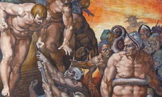 Impasti cromatici ricchi, stesi con pennellate molto grasse, veloci e graffianti. Ecco come scelsi di affrescare la contro-parete del Giudizio Universale.