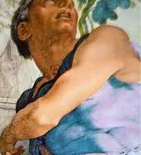 Eccolo qua Noè completamente nudo e ubriaco, quasi privo di sensi che giace semi-sdraiato.